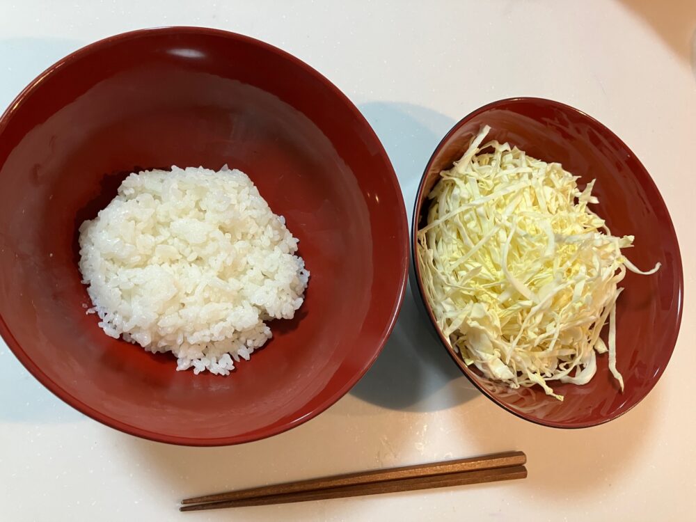 野菜は炭水化物と比べると低カロリーです。痩せるための必須条件、『インスリンを減らす』×『摂取㌍<消費㌍』を満たしやすくなります。日本人の主食の定番、炊き立て白米をキャベツと比較してみましょう。上の写真をご覧ください。白米1膳(150g、240㎉)と同じ量のキャベツはたった34.5㎉…6分の1以下( ゚Д゚)